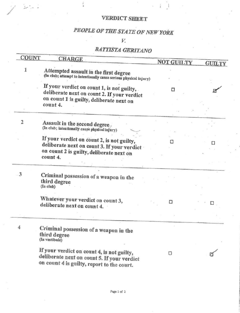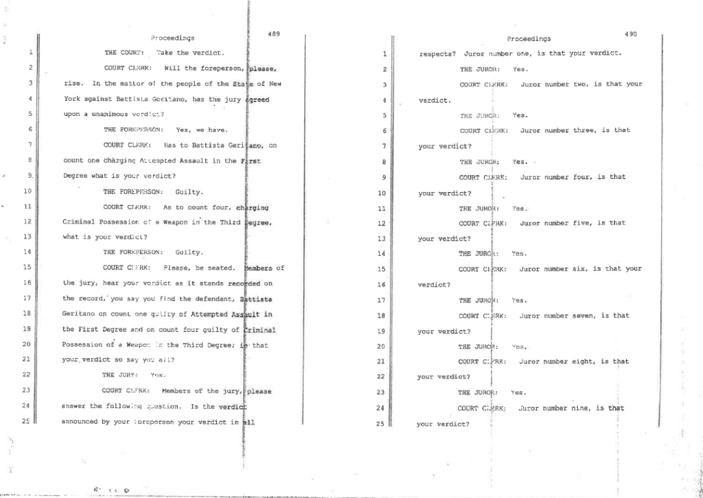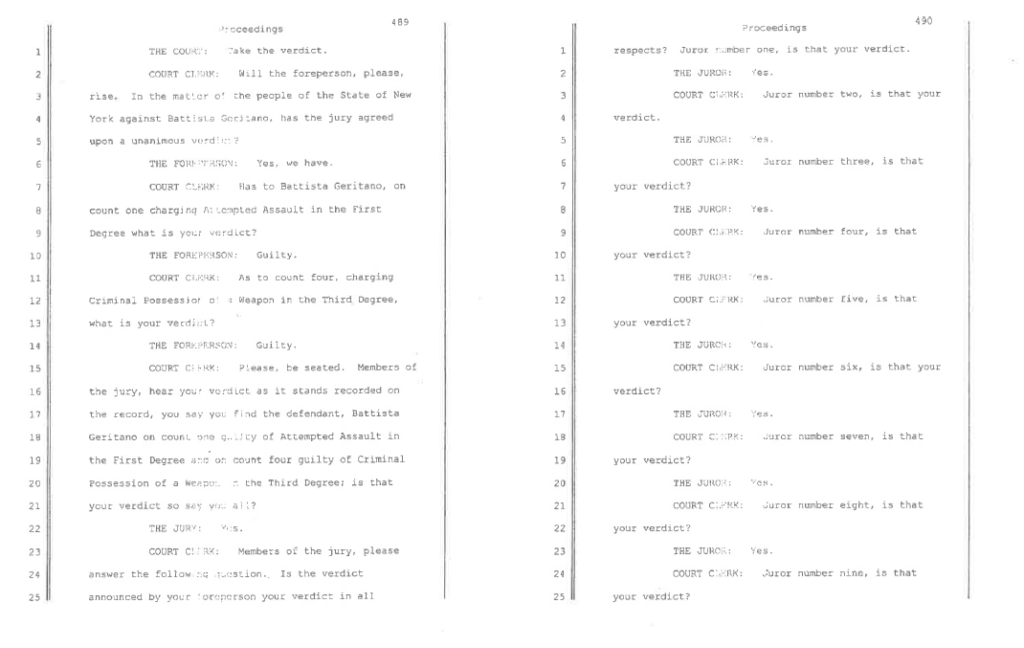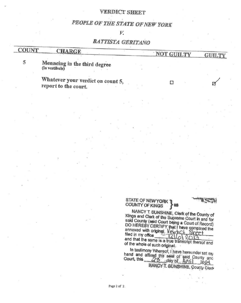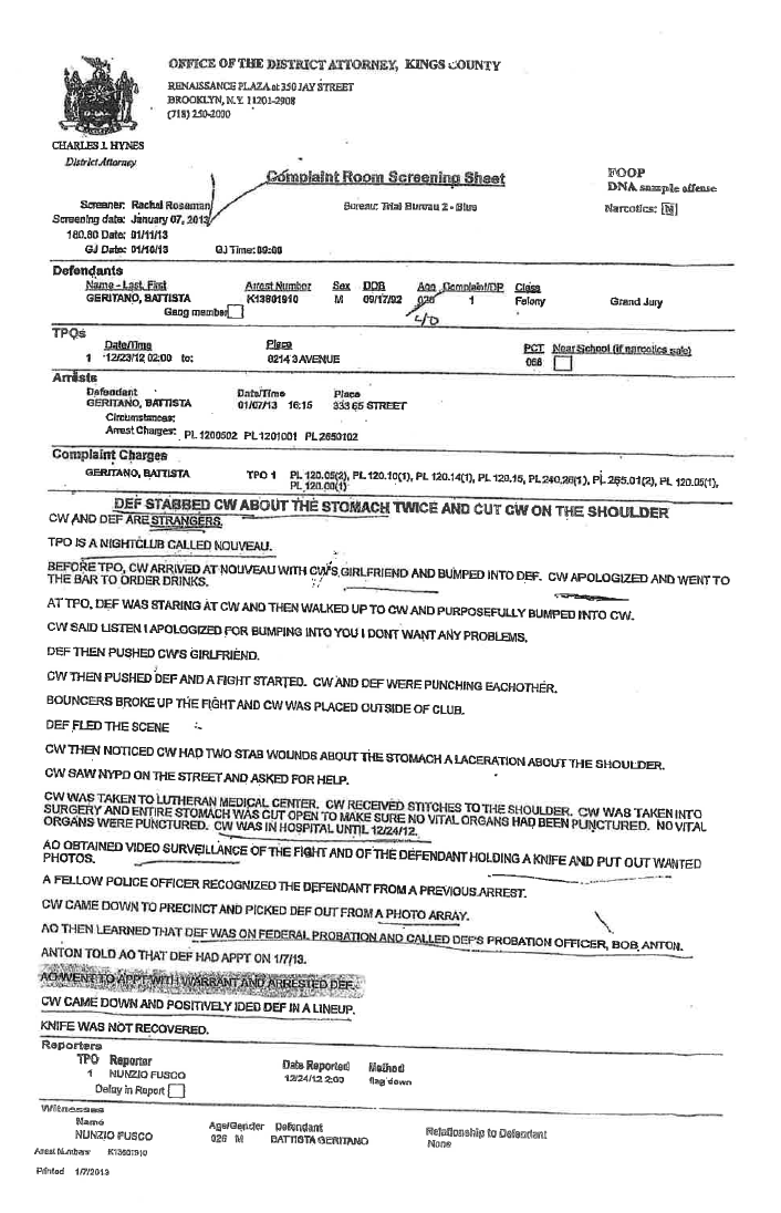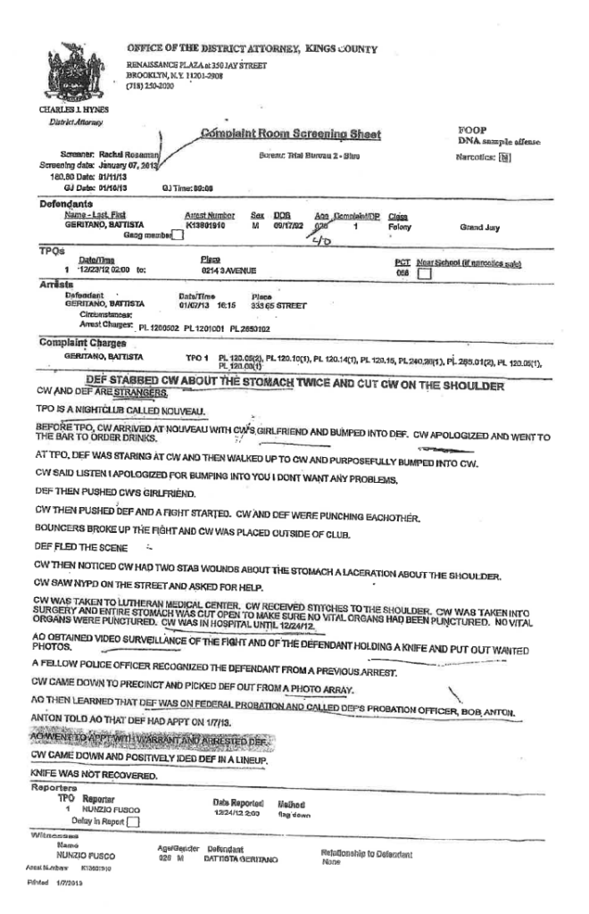 The Brooklyn District Attorney’s office nevertheless pressed charges, initially including attempted murder, though Geritano ultimately stood trial for attempted first-degree assault and weapon possession.