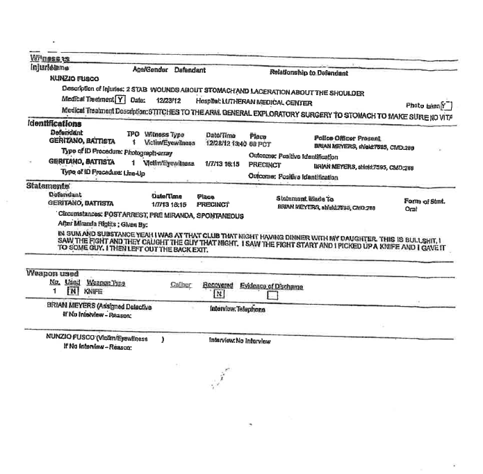 Fusco identified Geritano as one of the men he fought with – the one he had punched, but critically, he could not identify who stabbed him. In fact, at Geritano’s trial, Fusco admitted he “did not know which one stabbed him” among the brawlers.