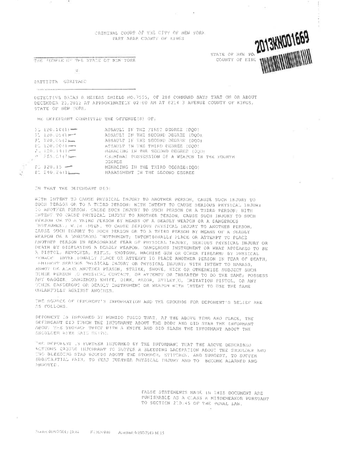 Subject: FOIL Request – People v. Battista Geritano, Ind. No. 260/2013 / Arrest No. K13801910