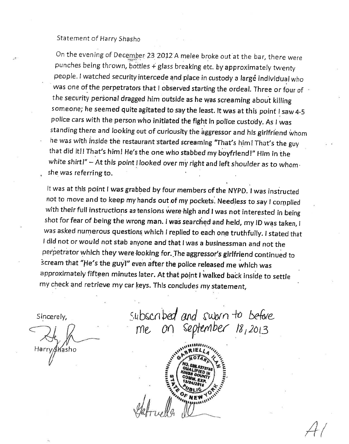 In fact, one club patron, Harry Shasho, came forward to say he was the man in the white shirt and that police briefly detained him at the scene as a suspect after a woman (presumably Fusco’s girlfriend) pointed him out, only to release him moments later.