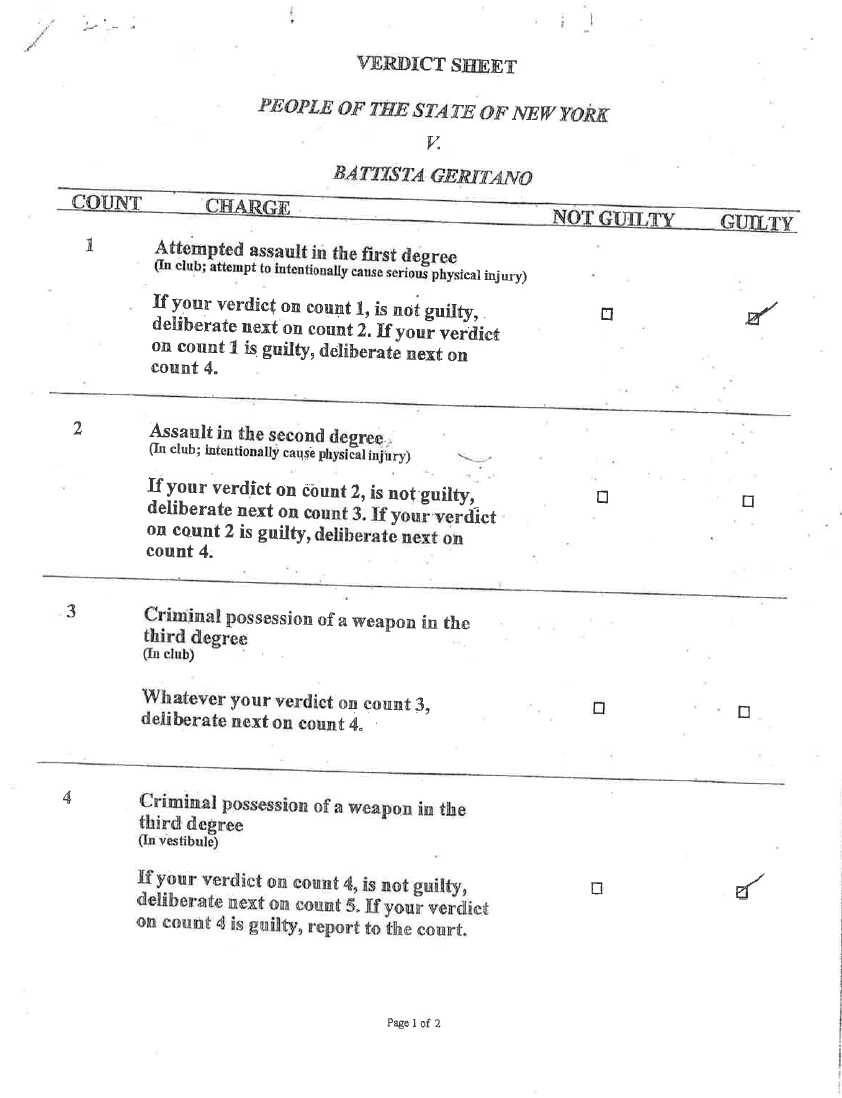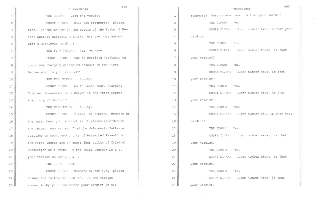 In December 2013, the jury agreed, convicting Geritano of attempted assault in the first degree and third-degree criminal weapon possession.