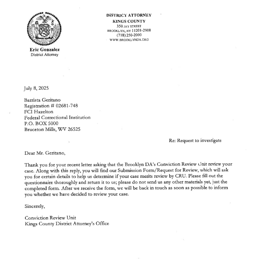 The NYPD and Brooklyn prosecutors have stood by Geritano’s conviction. After multiple reviews, the official position remains that they arrested the right man.