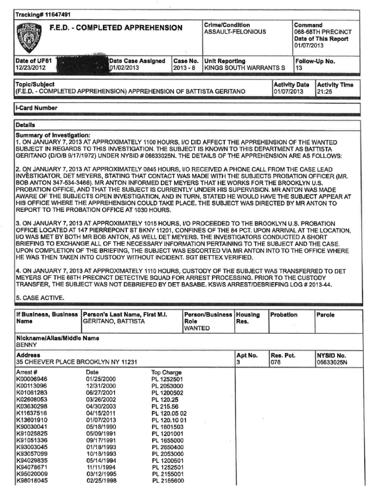 Re: FOIL Request – People v. Battista Geritano, Ind. No. 260/2013 / Arrest No. K13801910