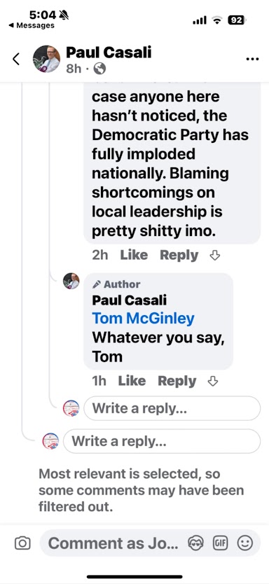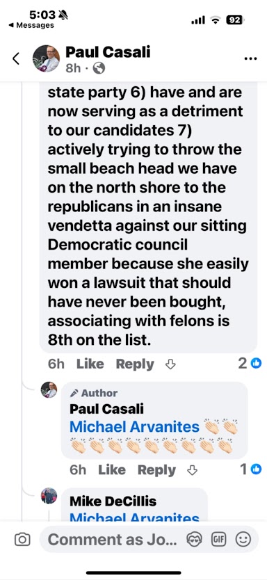 Casali even went so far as to publicly condemn Democratic Party leadership for allegedly “plotting” with Luthmann.