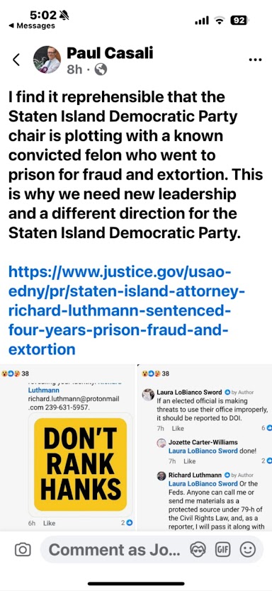 He hasn’t lived on Staten Island since 2017. But to hear some Democratic Party insiders tell it, you’d think he never left. From backroom chatter to public Facebook brawls, Luthmann’s name continues to dominate local political gossip, especially among operatives who once feared—or worked with—him.