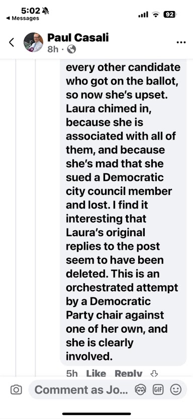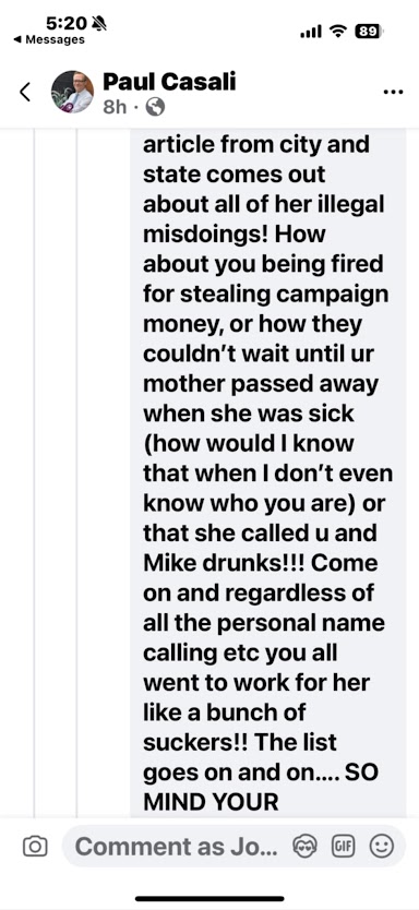 One of the loudest voices? Paul Casali, a minor Democratic figure and failed operative, has repeatedly gone on tirades accusing Luthmann of being “mentally ill,” “dangerous,” and “a convicted felon who went to prison for fraud and extortion.”