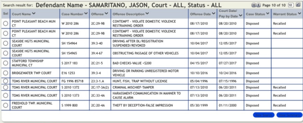 Jason “Jay” Samaritano is back in handcuffs – again. The self-proclaimed family court “advocate” was recently arrested in New Jersey, adding yet another entry to his mile-long rap sheet. Court records show Samaritano pleaded guilty late last year to multiple felonies – theft by deception, fraudulent handling of funds, and stalking.